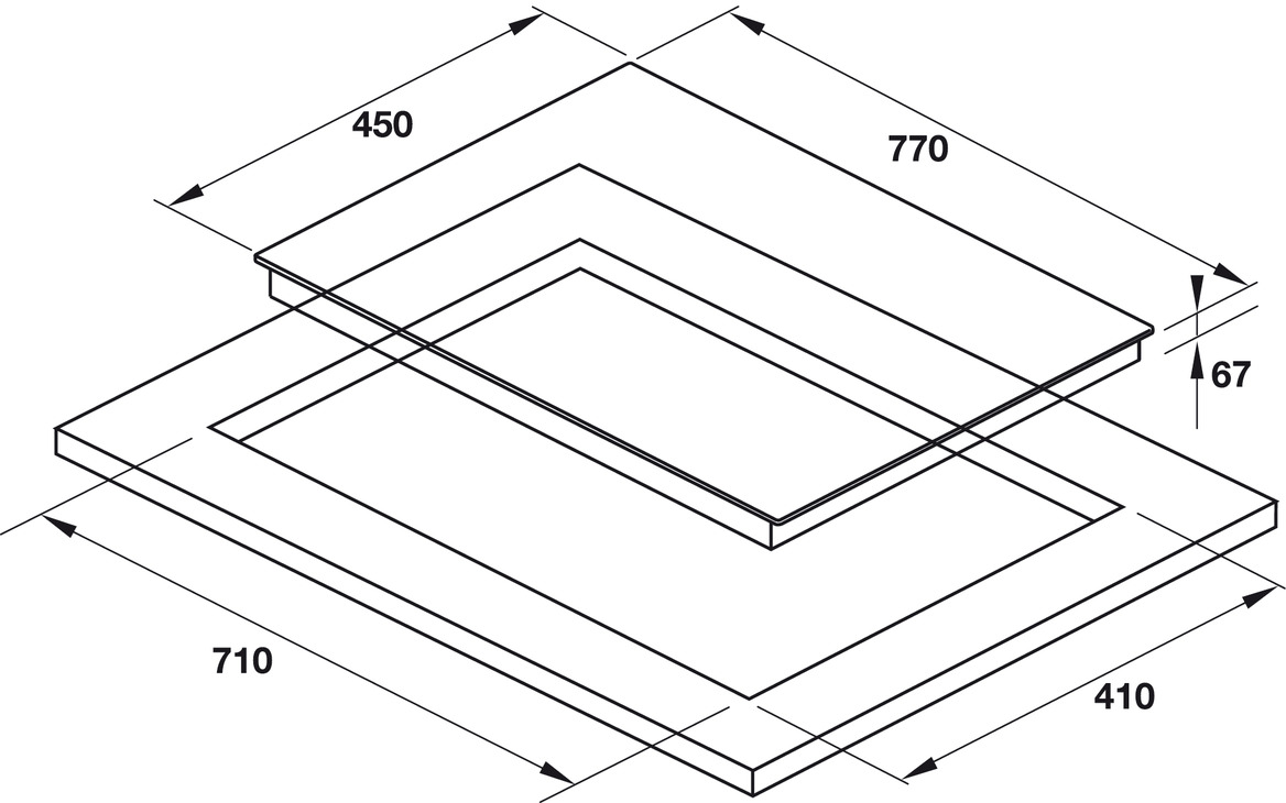 • Kích thước lắp đặt: 710R x 410S mm