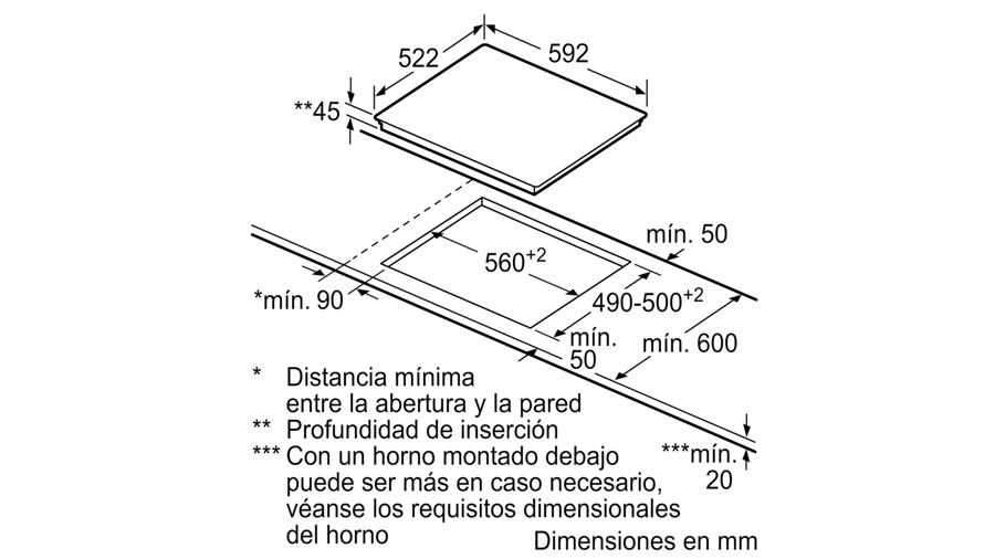 • Mặt gốm thủy tinh Schott, vác cạnh trước