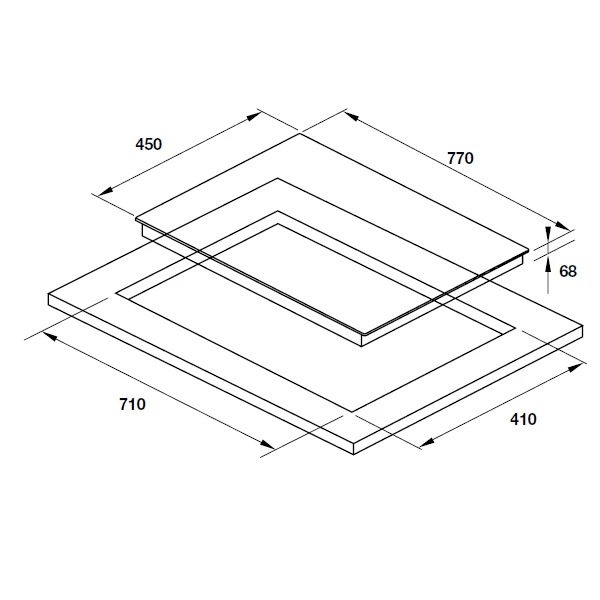 | Kích thước lắp đặt: | 710R x 410S mm |
