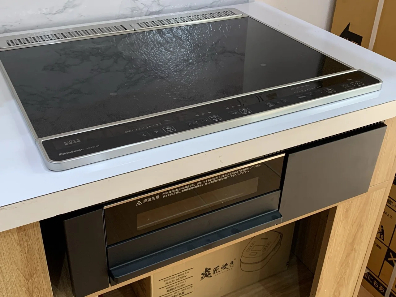 | Công suất mỗi bếp | Bếp từ trái (IH): 3kW Bếp từ phải (IH): 3kW Bếp hồng ngoại: 1.2 kW Lò nướng: 1.4 kW |