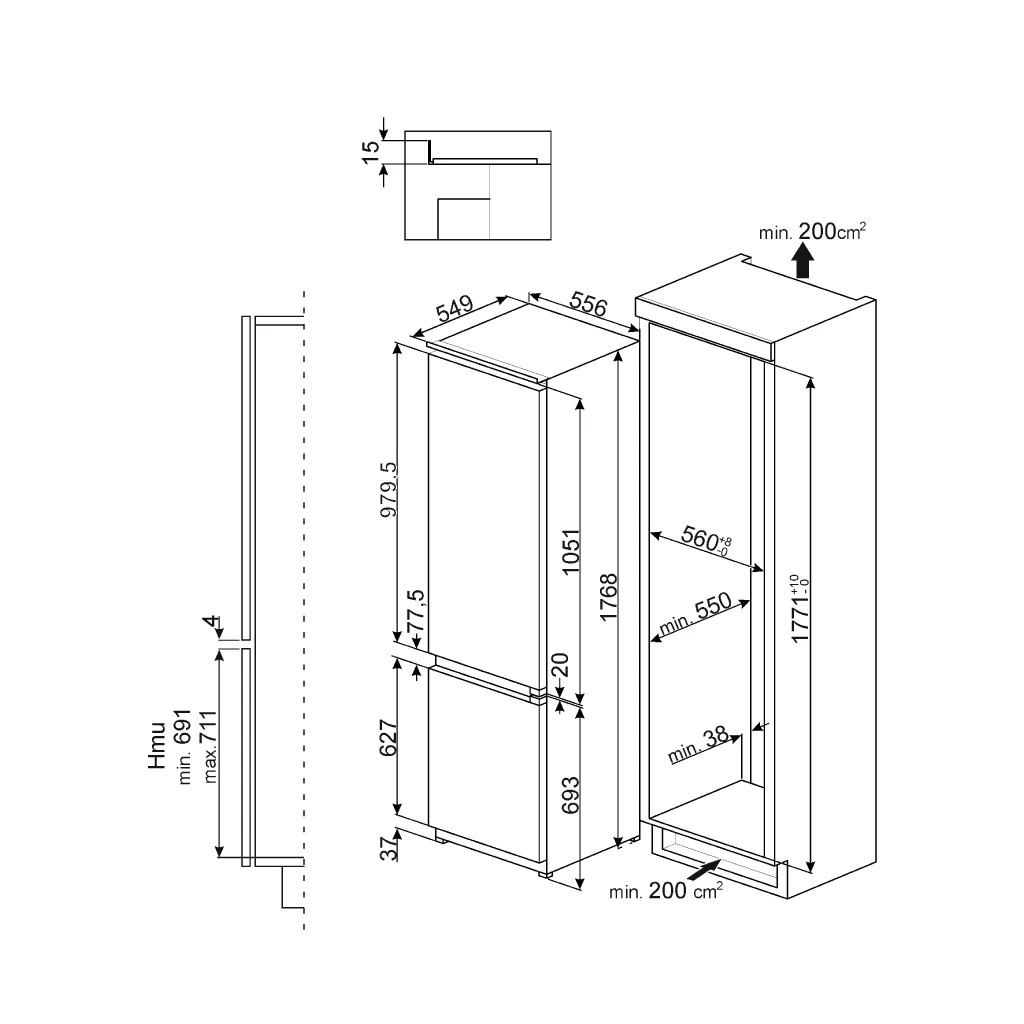 Tủ lạnh âm tủ Smeg CD7276NLD2P1